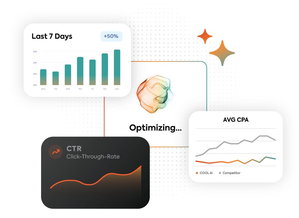 COOLAI delivers live performance intelligence across campaigns, channels, and creatives—so teams can see what’s happening now and act immediately. No waiting. No static reports. Just always-on visibility that fuels smarter decisions and continuous optimization.